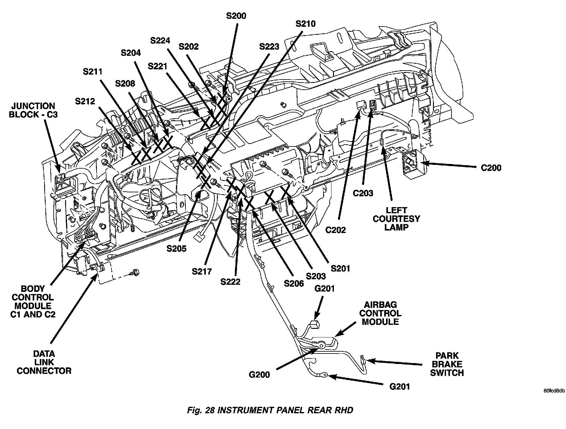 Fig. 28 Instrument Panel Rear RHD: