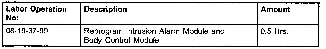 This bulletin involves a special coordinated reprogramming (flash) process. The Intrusion Transceiver Module (ITM) must be reprogrammed first, then immediately followed by the reprogramming of the Body Control Module (BCM).
