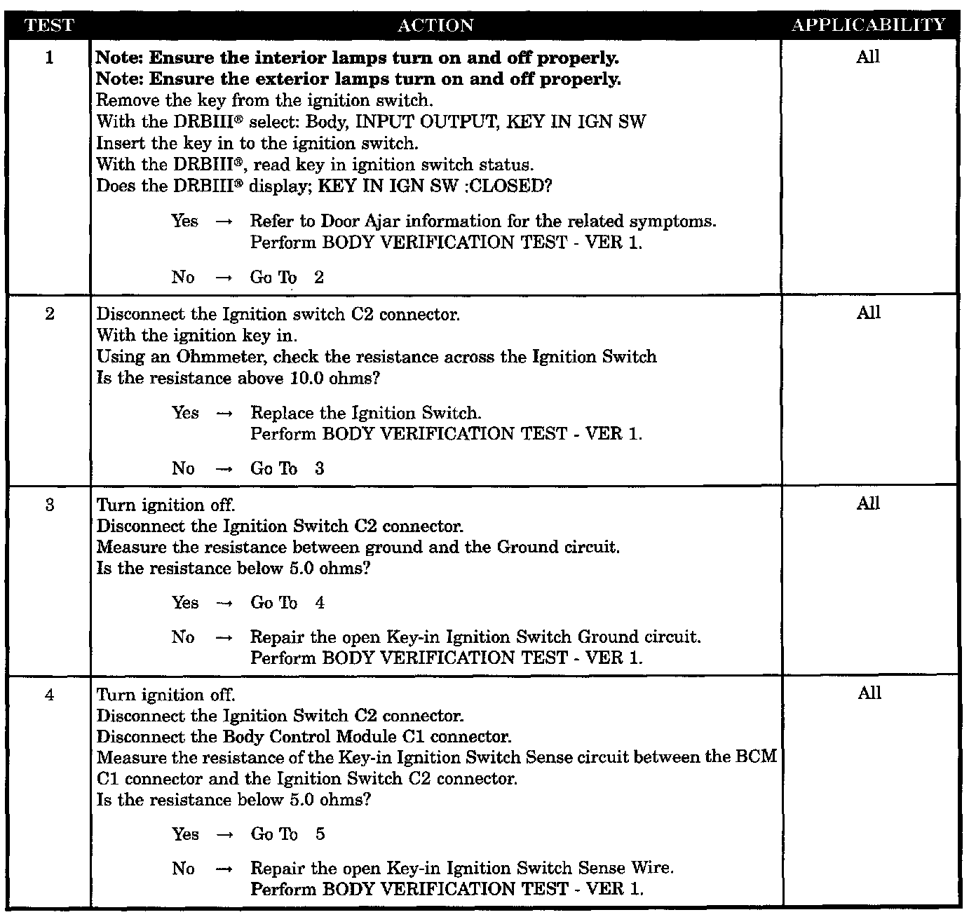 CHIME INOPERATIVE WITH KEY IN IGNITION, DRIVER DOOR OPEN