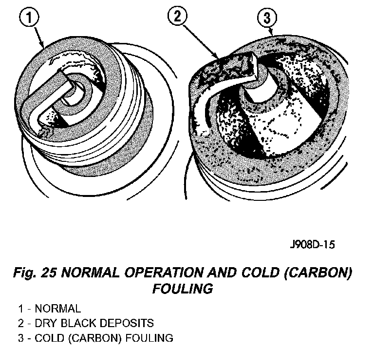 The few deposits present on the spark plug will probably be light tan or slightly gray in color. This is evident with most grades of commercial gasoline. There will not be evidence of electrode burning. Gap growth will not average more than approximately 0.025 mm (.001 in) per 3200 km (2000 miles) of operation.
