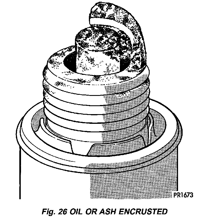 If one or more spark plugs are oil or oil ash encrusted, evaluate engine condition for the cause of oil entry into that particular combustion chamber.