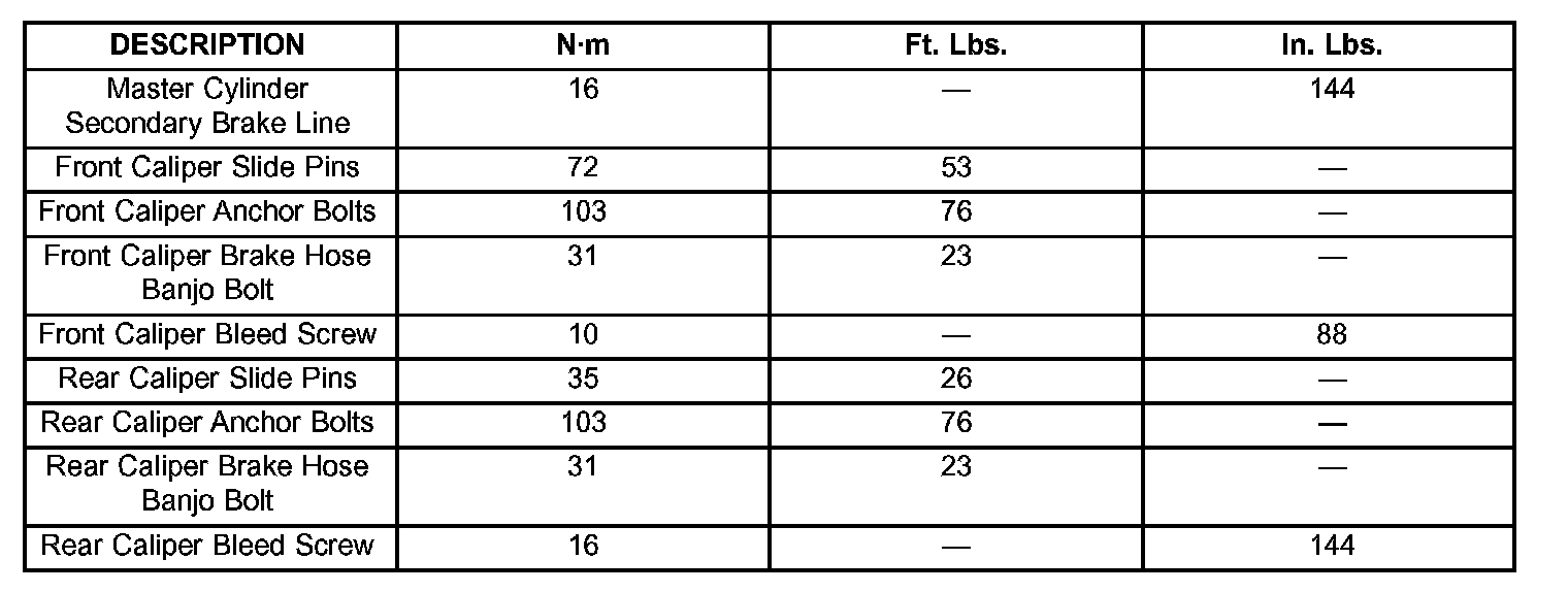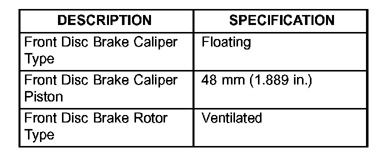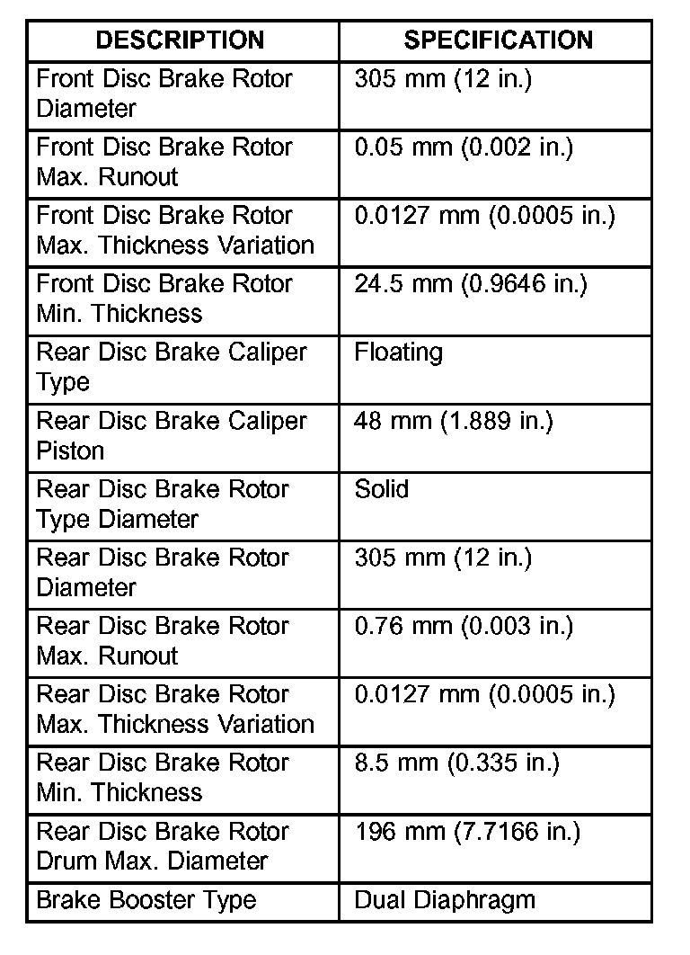 Rotor, Drum, Caliper And Booster Specifications: