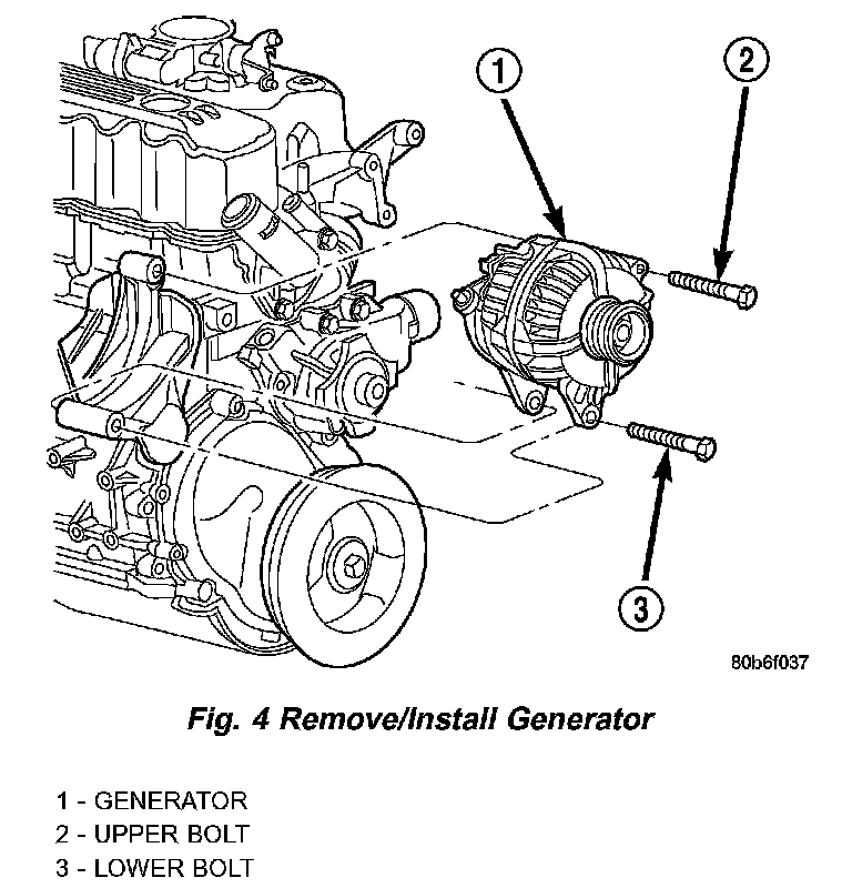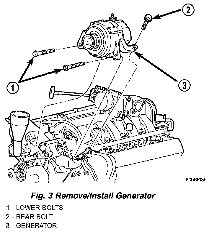 Fig.3 Remove/Install Generator - 4.7L V-8 Engine: