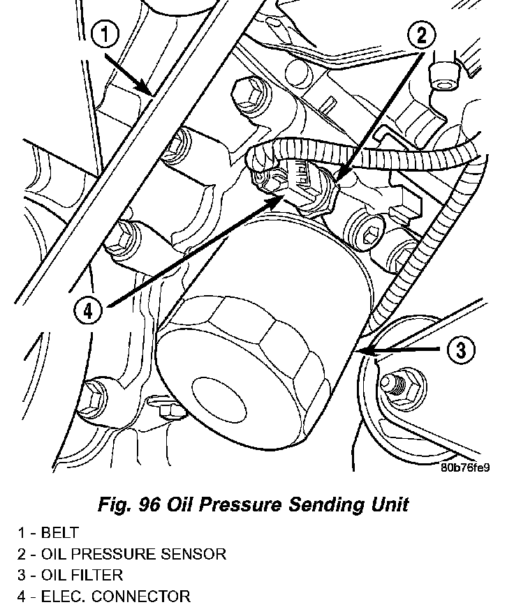 4. Disconnect oil pressure sender wire (Fig. 96).