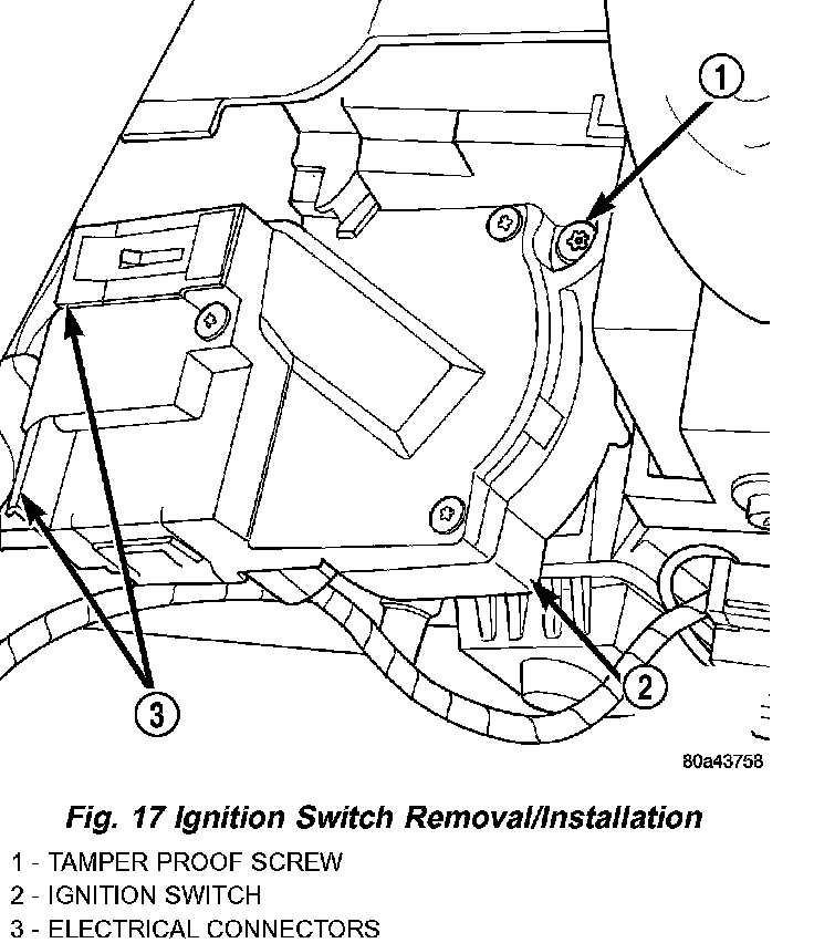 IGNITION SWITCH REMOVALThe ignition key must be in the key cylinder for cylinder removal. The key cylinder must be removed first before removing ignition switch.