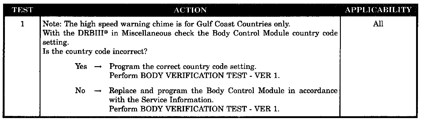 VEHICLE SPEED WARNING CHIME PROBLEM