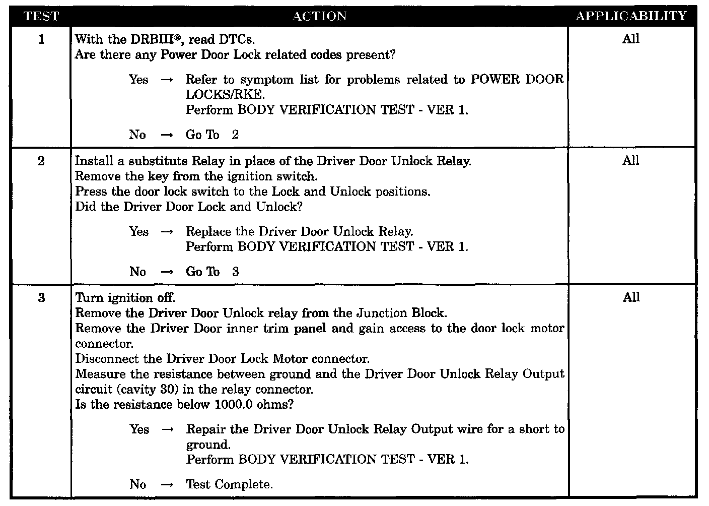 DRIVER DOOR FAILS TO UNLOCK