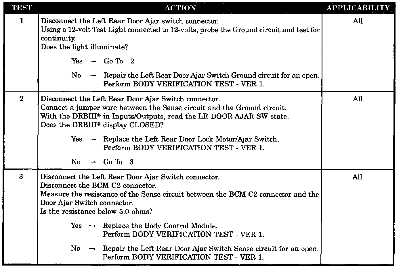 LEFT REAR DOOR AJAR CIRCUIT OPEN