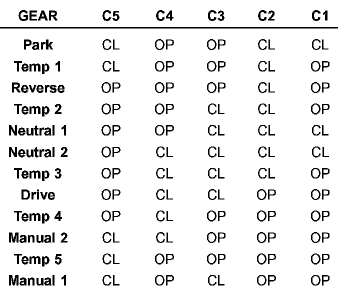 There are many possible combinations of open and closed switches (codes). Seven of these possible codes are related to gear position and five are recognized as "between gear" codes. This results in many codes, which should never occur. These are called "invalid" codes. An invalid code will result in a DTC, and the TCM will then determine the shift lever position based on pressure switch data. This allows reasonably normal transmission operation with a TRS failure.