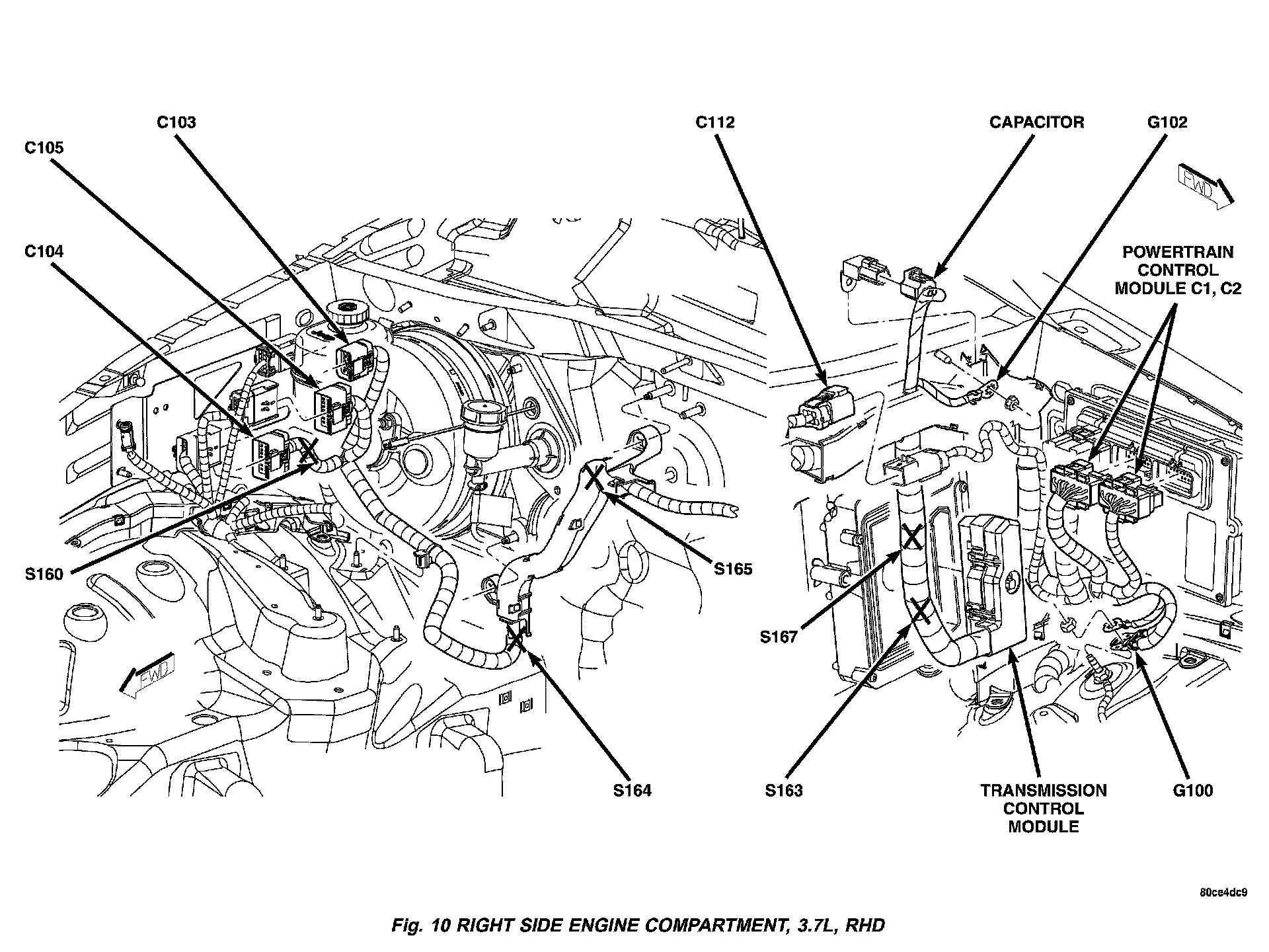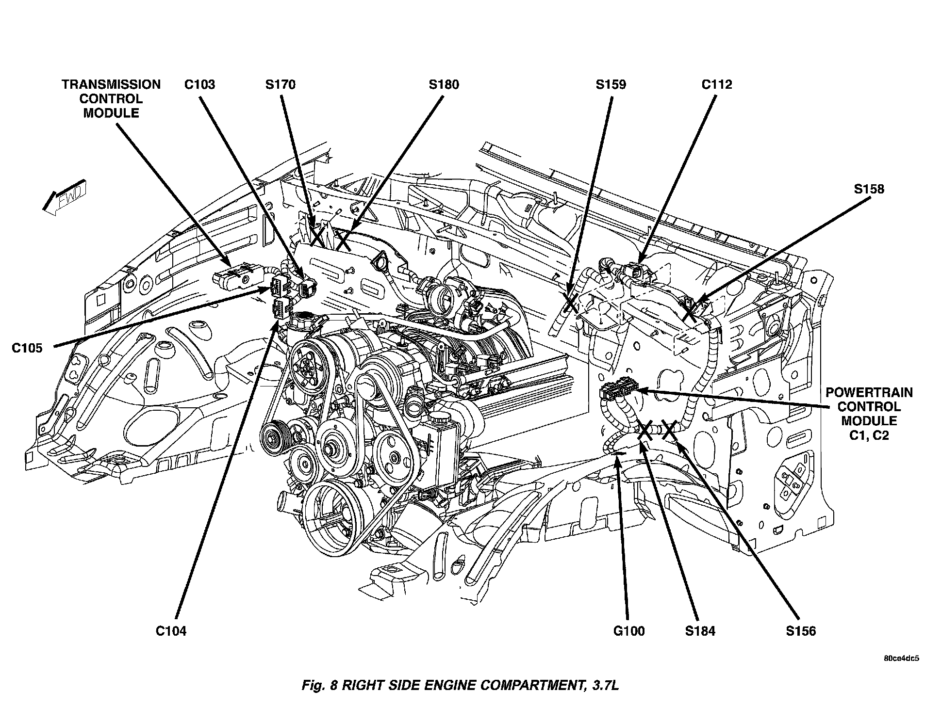 Fig. 8 Right Side Engine Compartment, 3.7L: