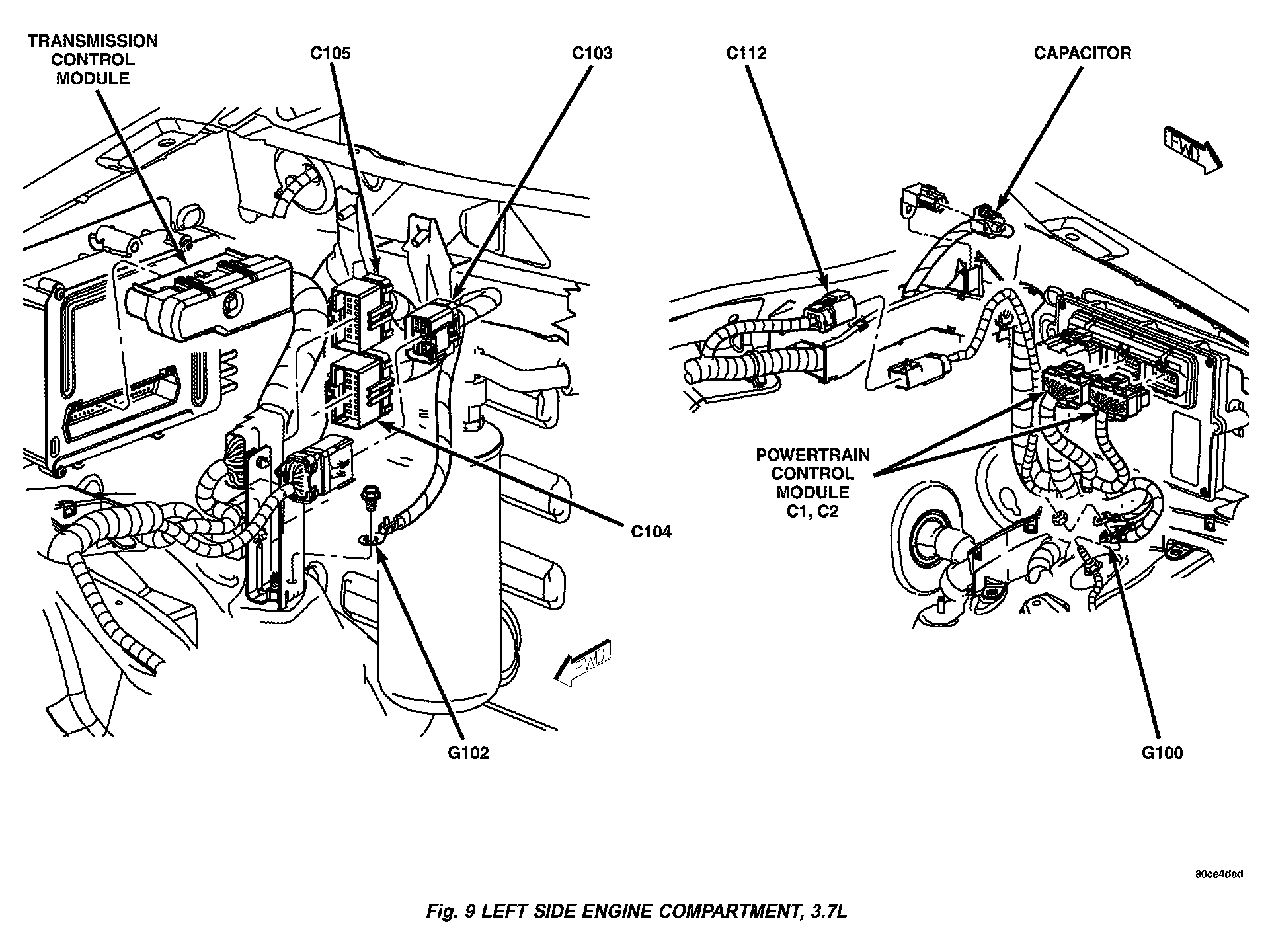 Fig. 9 Left Side Engine Compartment, 3.7L:
