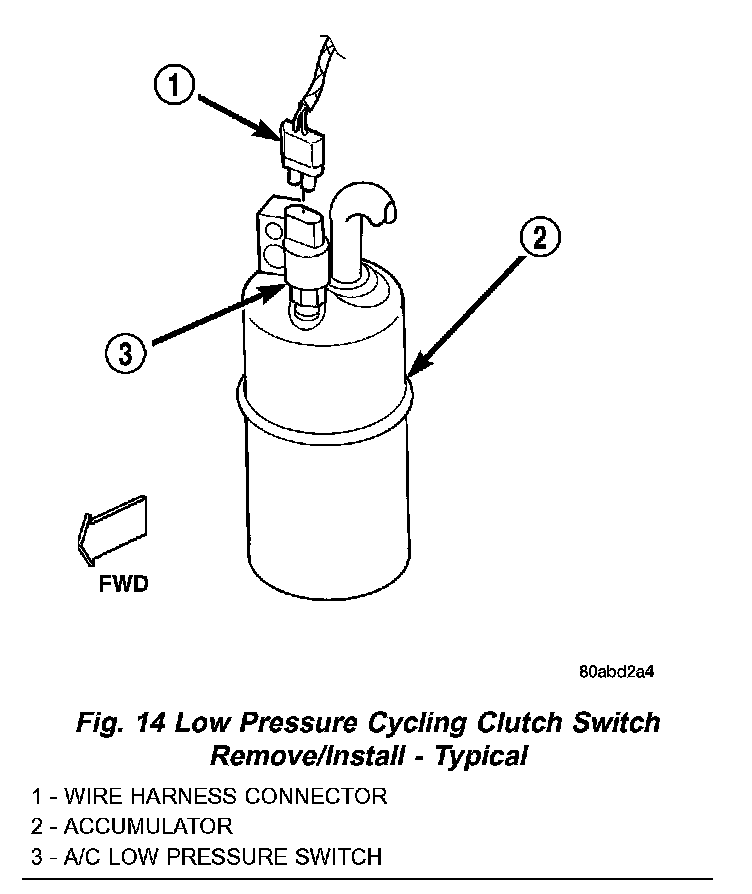 Fig.14 Low Pressure Cycling Clutch Switch Remove/Install - Typical: