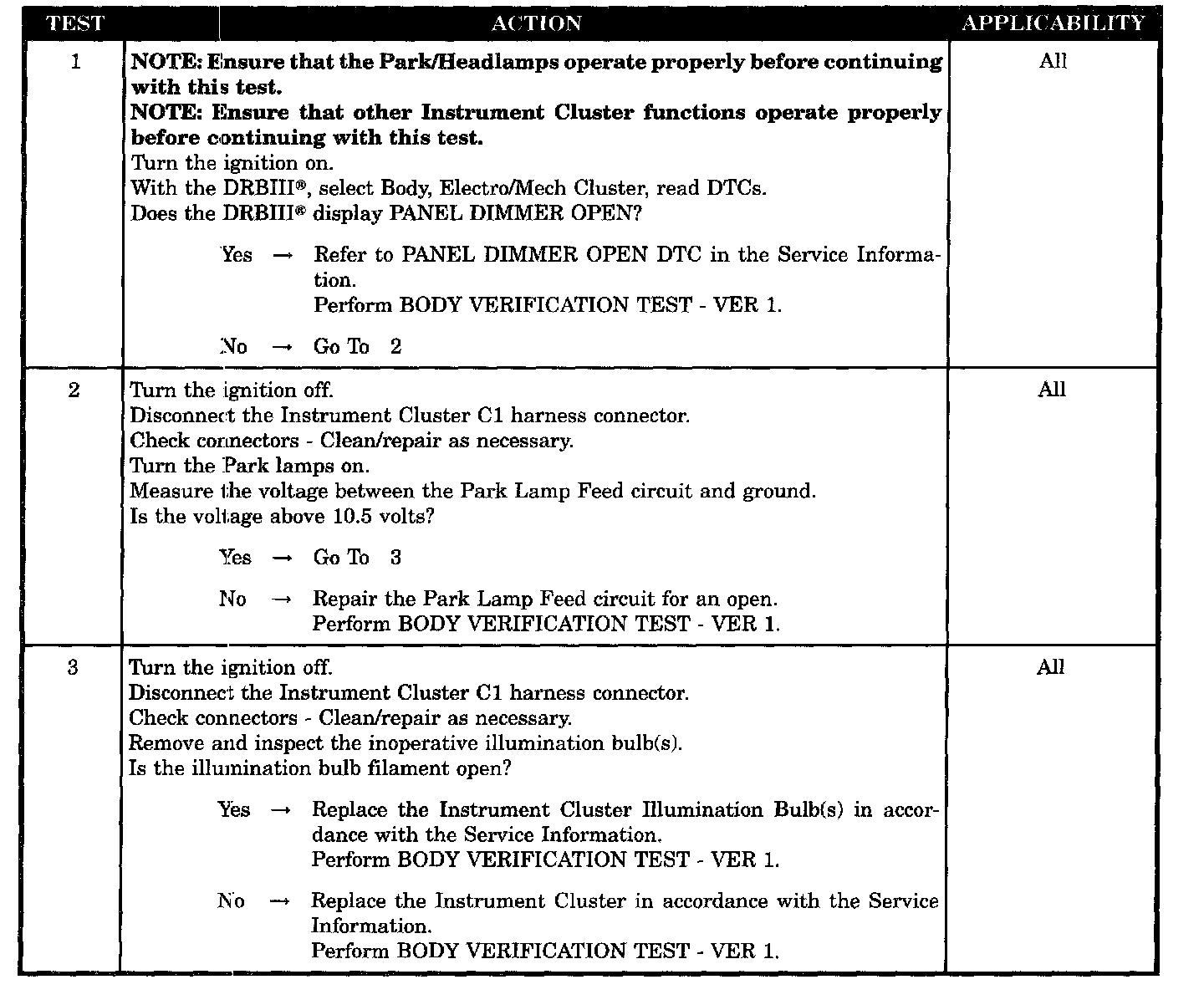 Instrument cluster panel dimming DTC