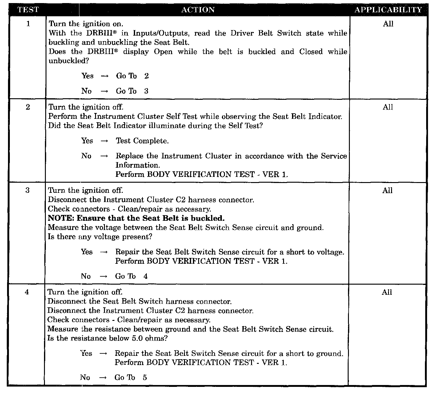 SEAT BELT INDICATOR NOT OPERATING PROPERLY