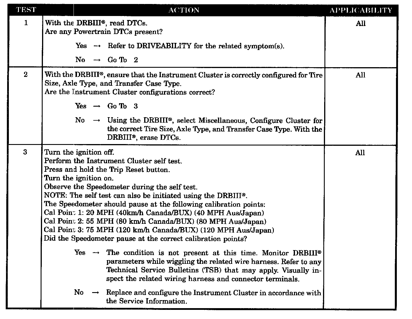 SPEEDOMETER INACCURATE OR INOPERATIVE