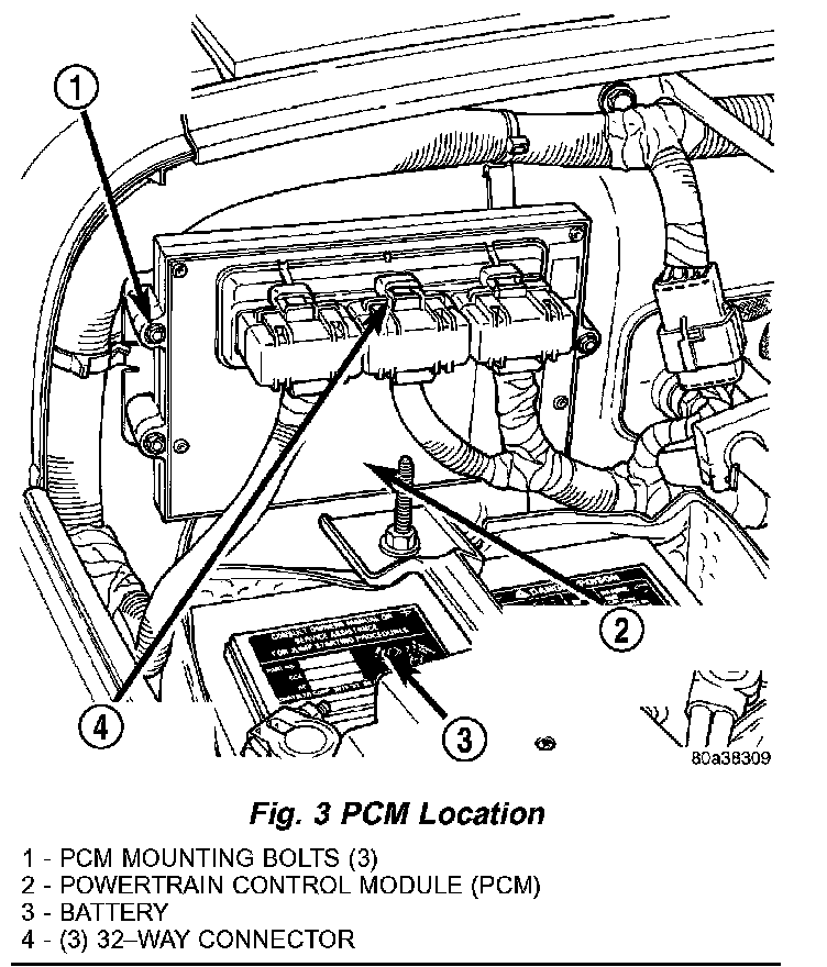 The PCM is located in the engine compartment. The PCM is referred to as JTEC.