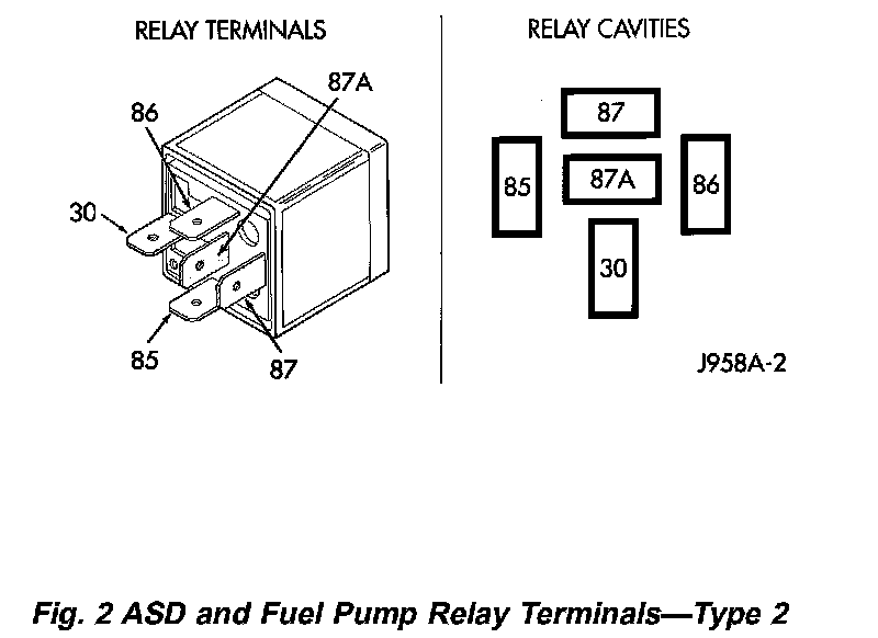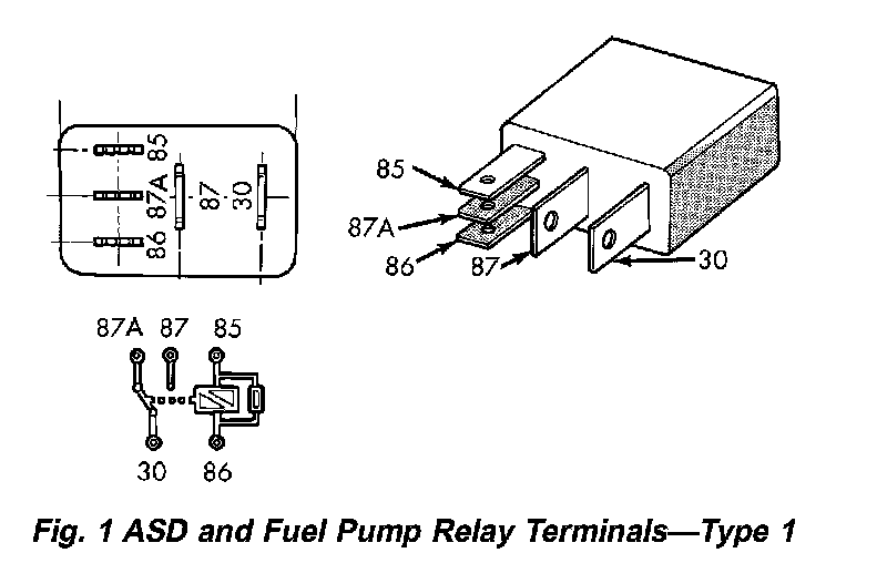 ASD AND FUEL PUMP RELAYSFig. 1 ASD And Fuel Pump Relay Terminals - Type 1: