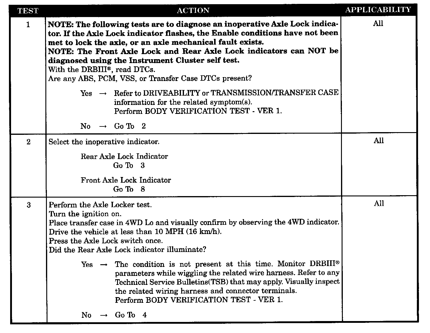 AXLE LOCK INDICATOR PROBLEMS
