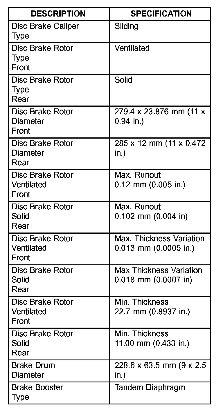 Brake System Specifications: