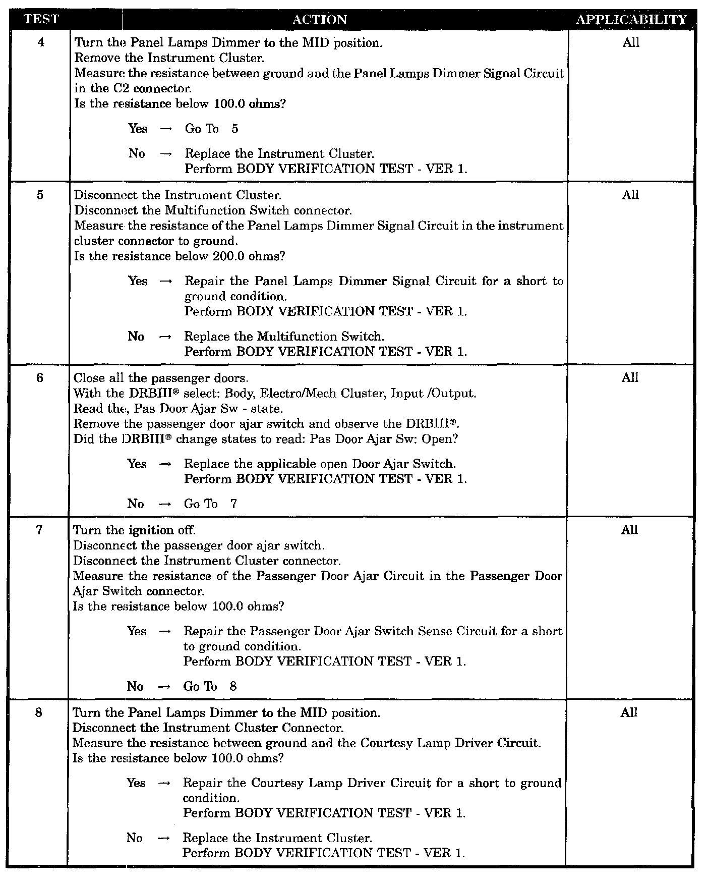 - Panel lamps dimmer signal circuit short to ground