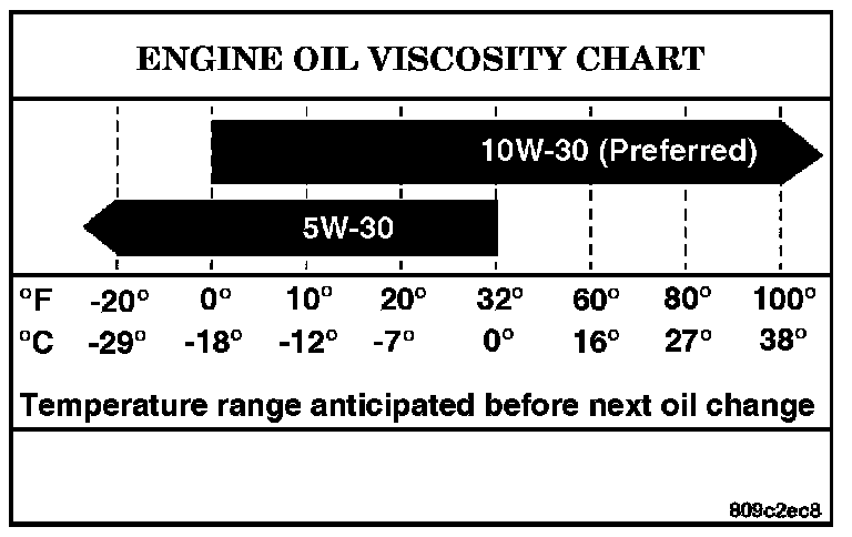 The proper SAE viscosity grade of engine oil should be selected based on the following recommendation and be within the operating temperature shown in the engine oil viscosity chart.