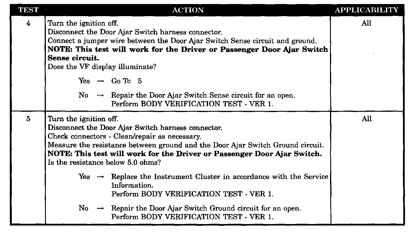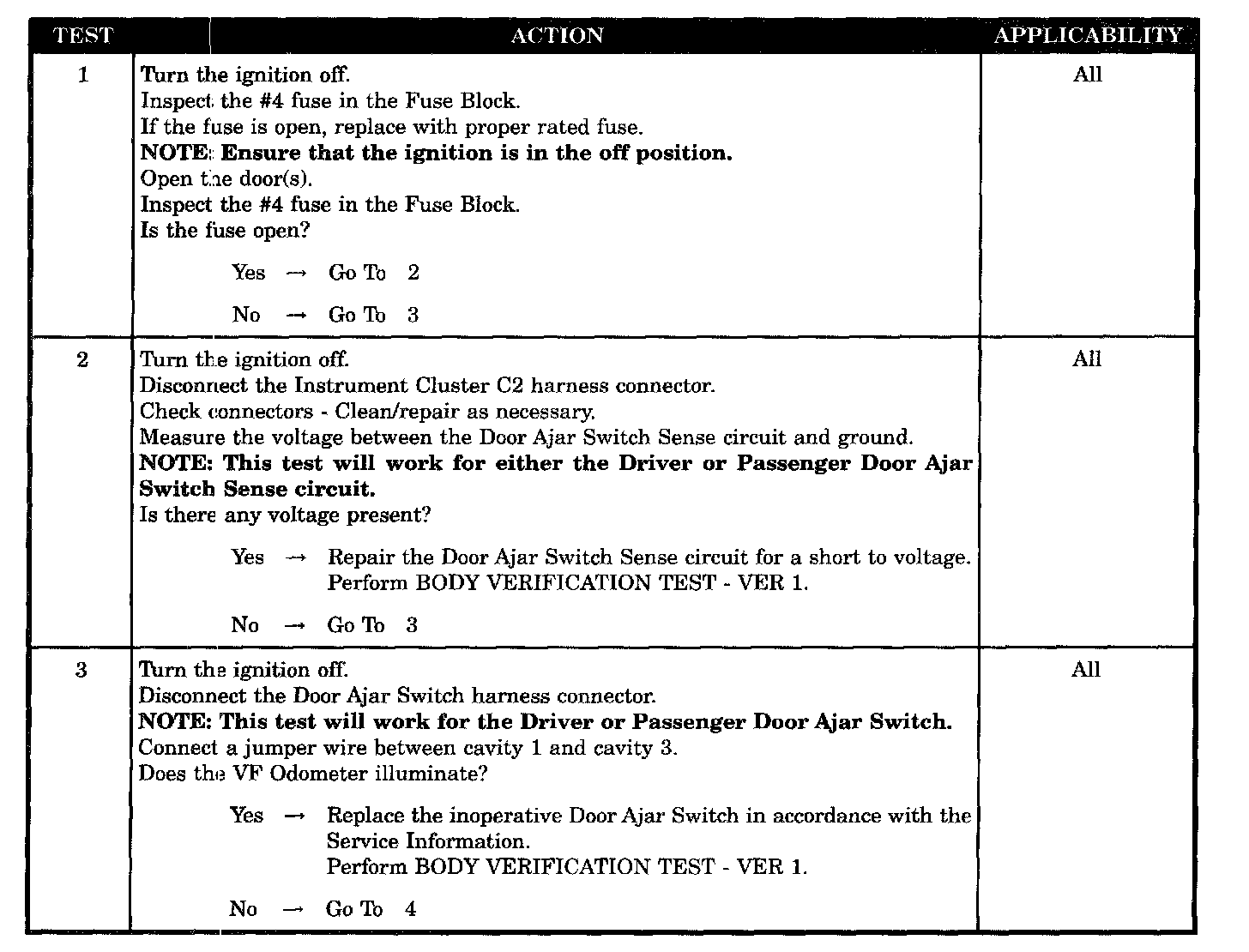 VF ODOMETER INOPERATIVE WITH DOOR OPEN