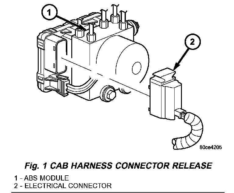 4. Install the wiring harness connector to the CAB and push down on the release to secure the connector.