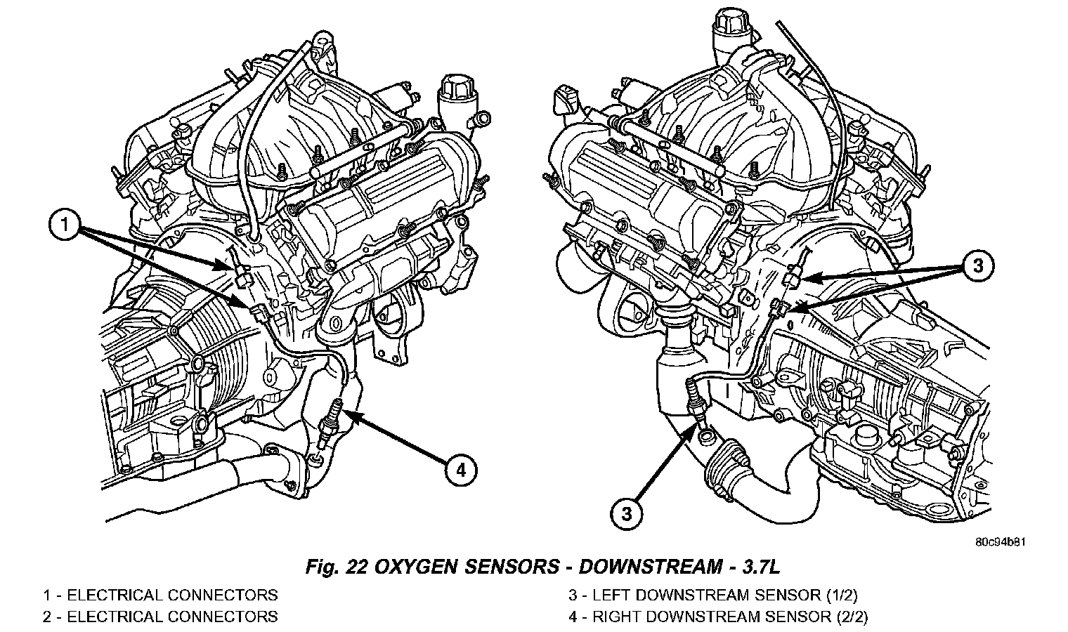 Fig.22 Oxygen Sensors - Downstream - 3.7L: