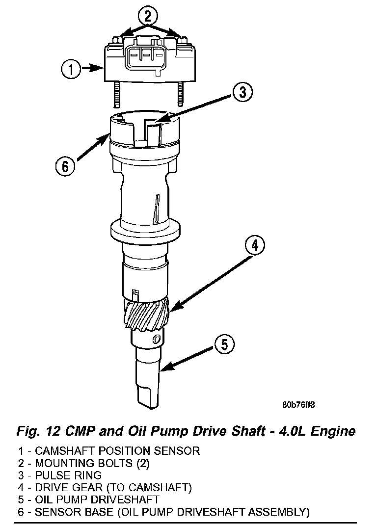 REMOVALFig. 12 CMP And Oil Pump Drive Shaft - 4.0L Engine:
