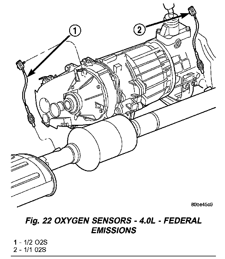 REMOVALFig.22 Oxygen Sensors - 4.0L - Federal Emissions: