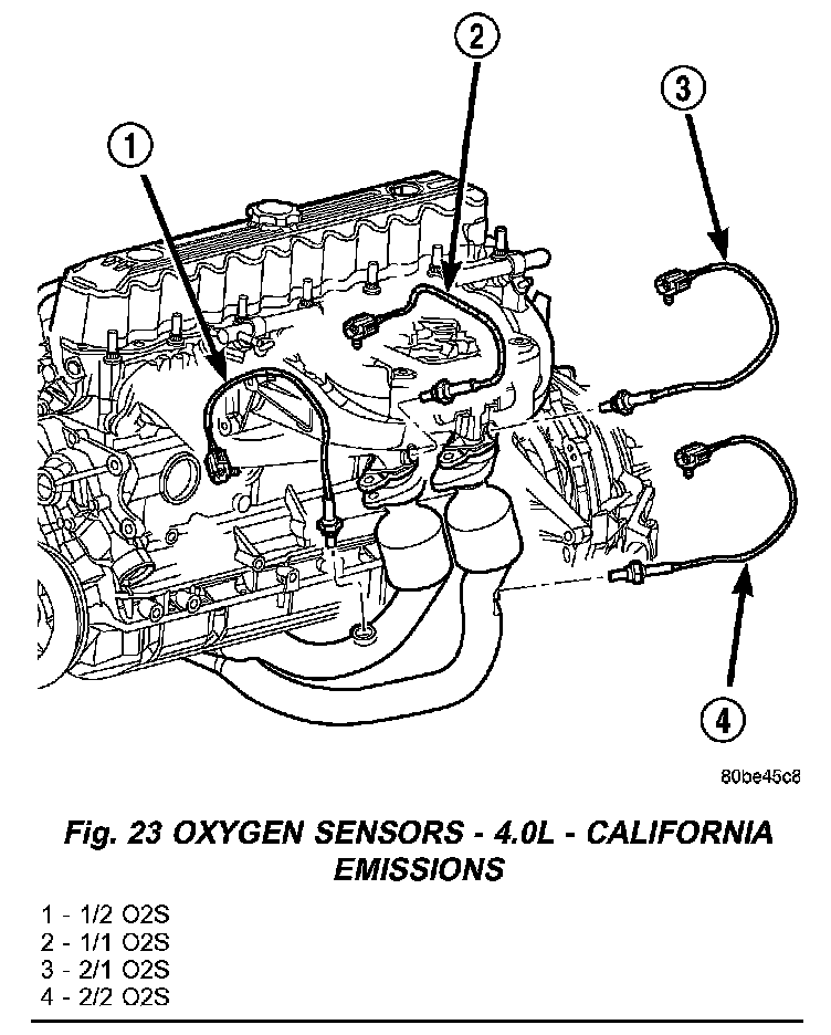 Fig.23 Oxygen Sensors - 4.0L - California Emissions: