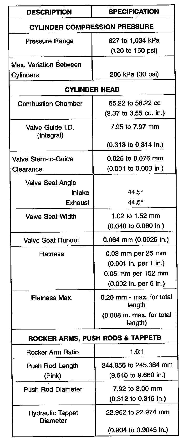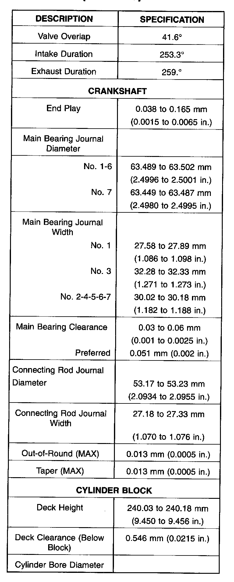 Complete Engine Specifications