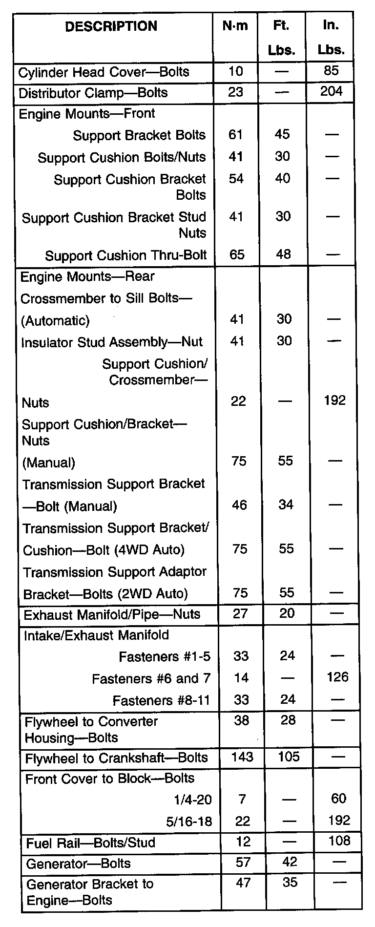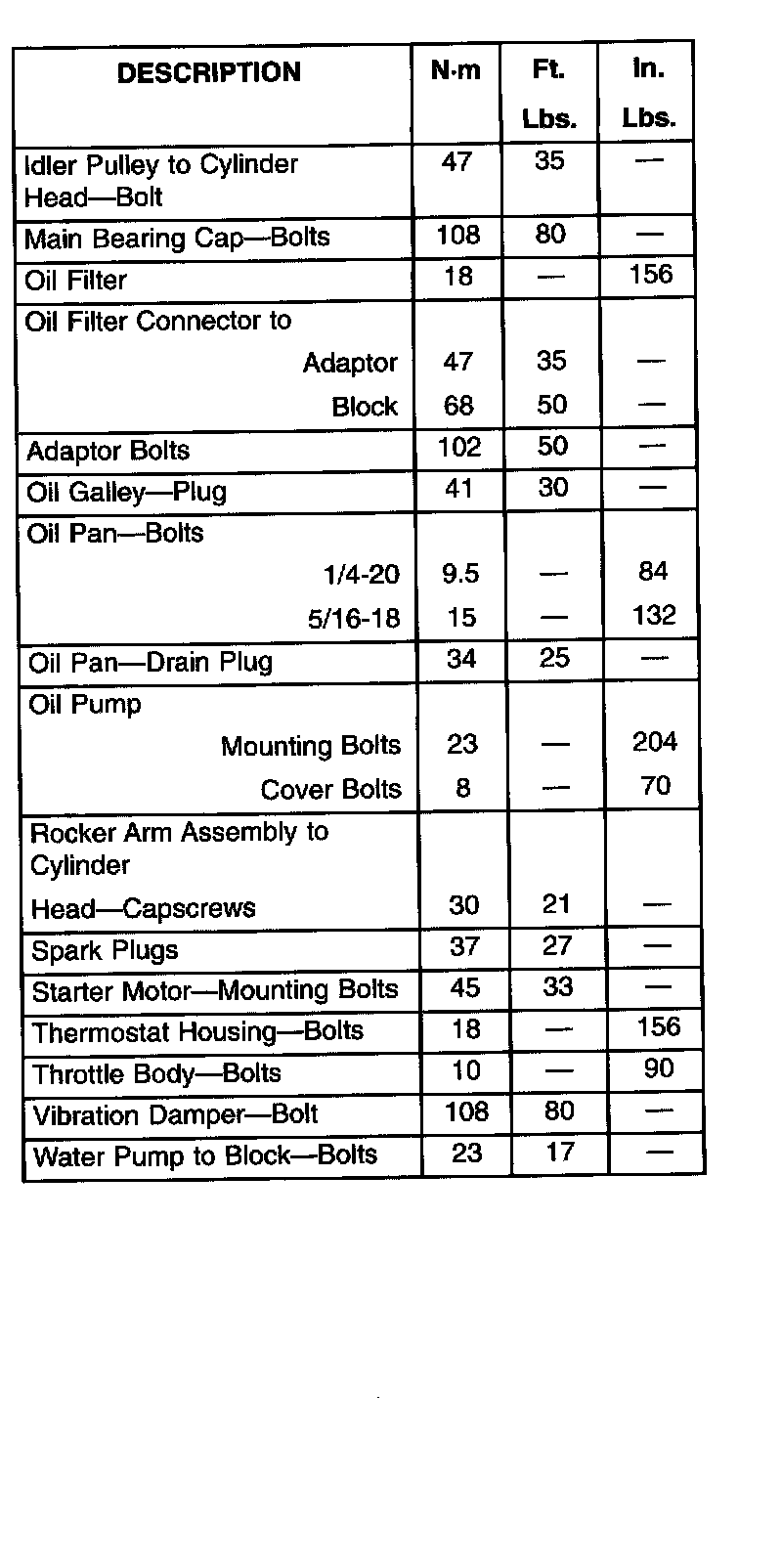 Torque Specifications