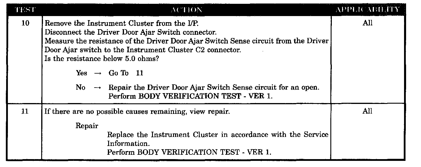 CHIME INOPERATIVE WITH KEY IN IGNITION, DRIVER'S DOOR OPEN