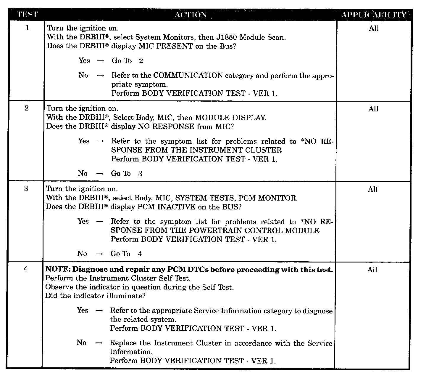 No response - instrument cluster