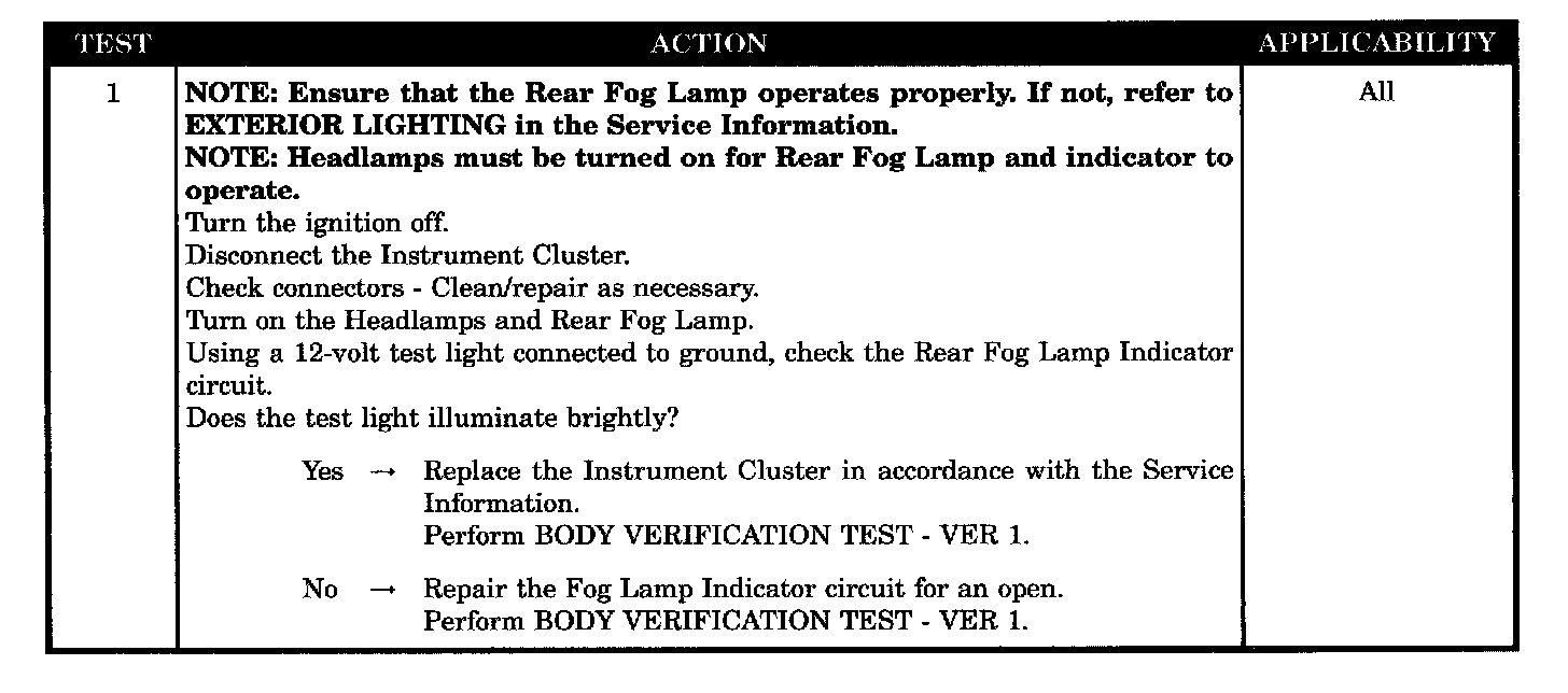 REAR FOG LAMP INDICATOR INOPERATIVE - BUX ONLY