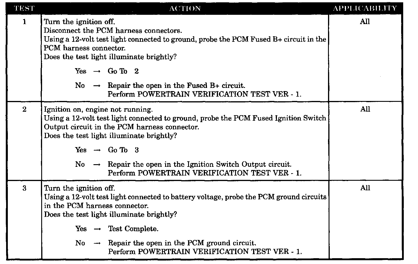 Checking the PCM Power and Ground Circuits