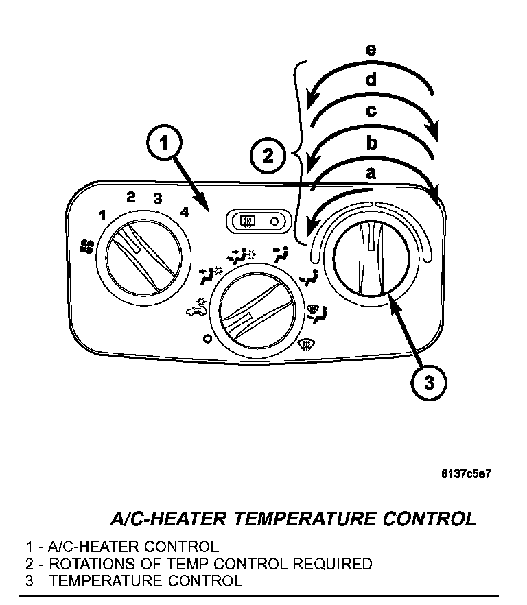 1. With the ignition switch in the Off position, move the temperature control to its middle (12 o'clock) position.