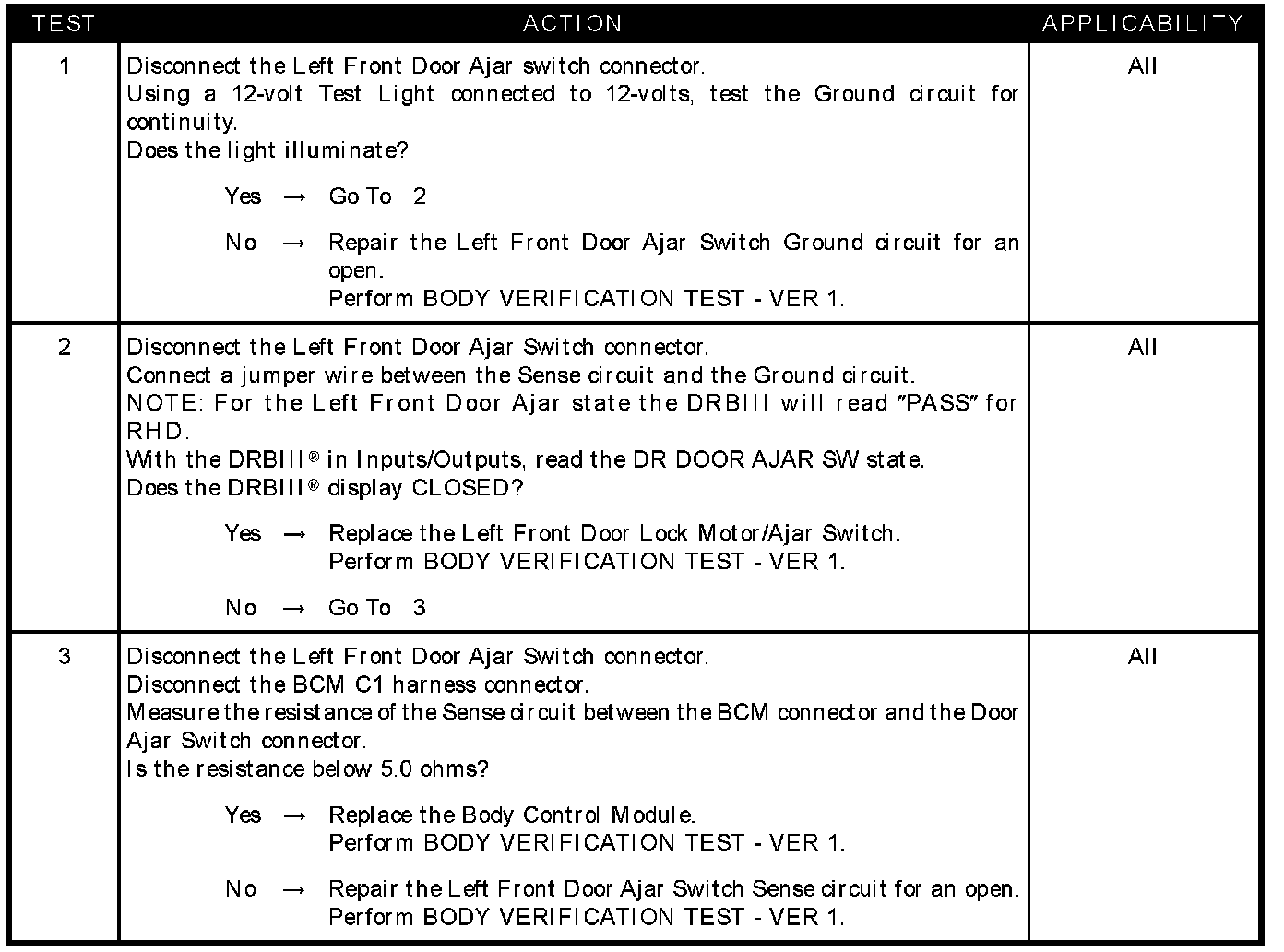 LEFT FRONT DOOR AJAR CIRCUIT OPEN