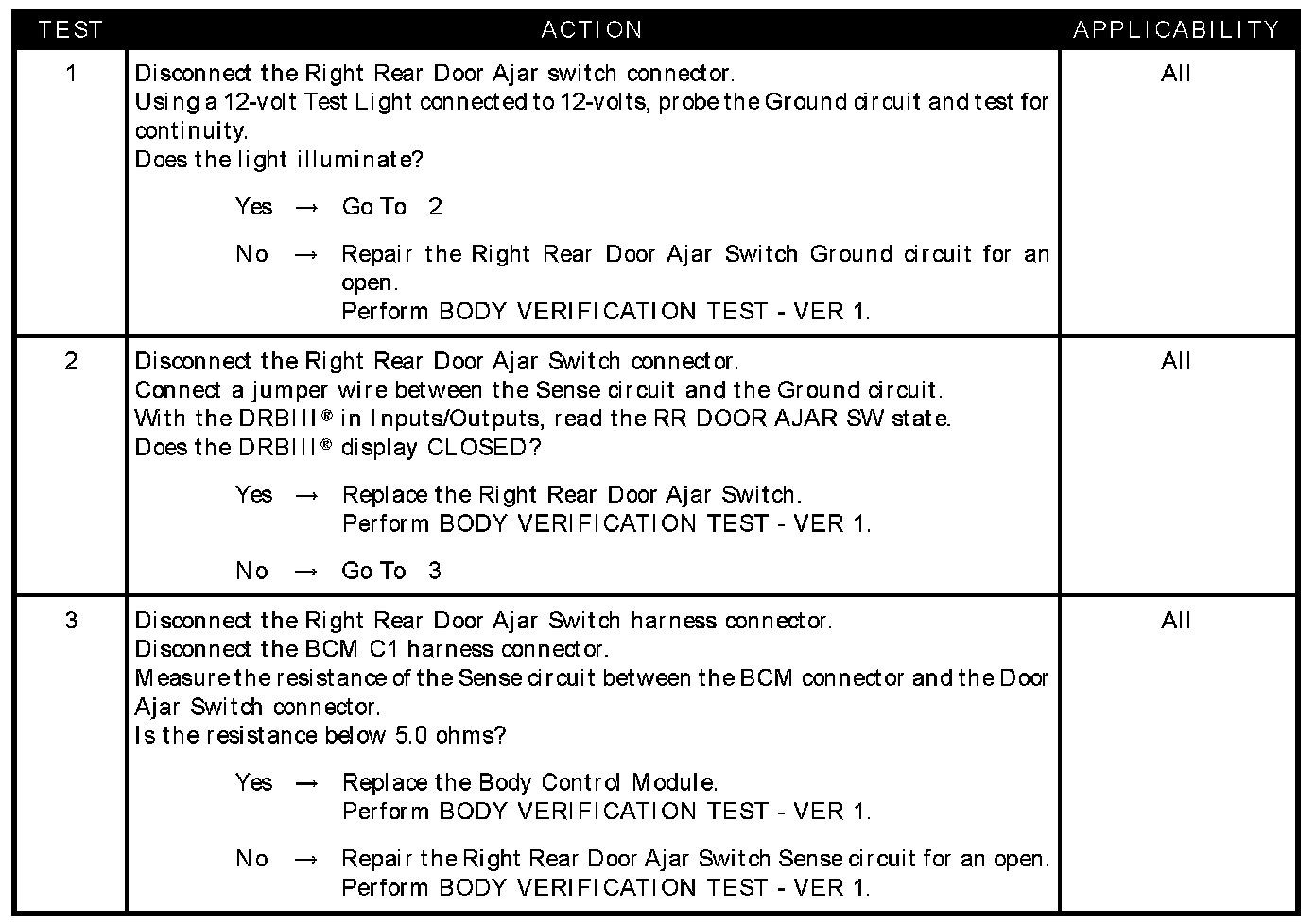 RIGHT REAR DOOR AJAR CIRCUIT OPEN