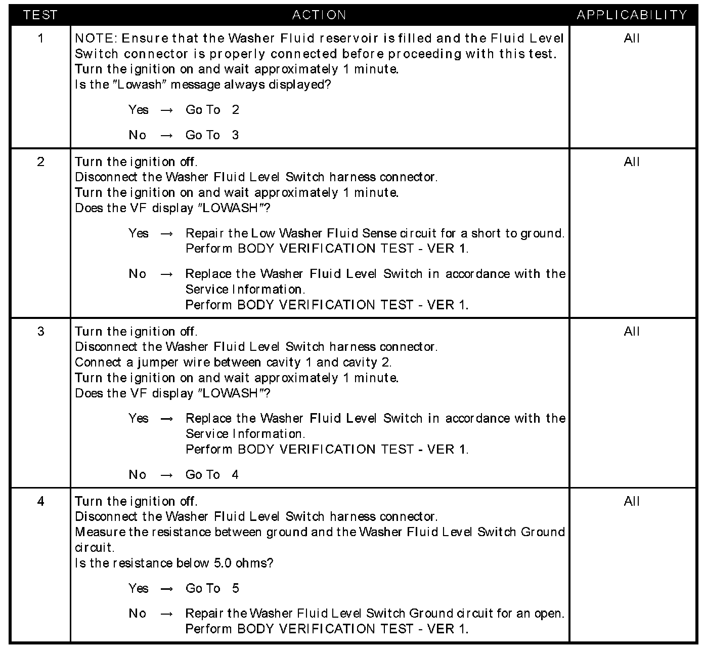 LOW WASH MESSAGE NOT OPERATING PROPERLY