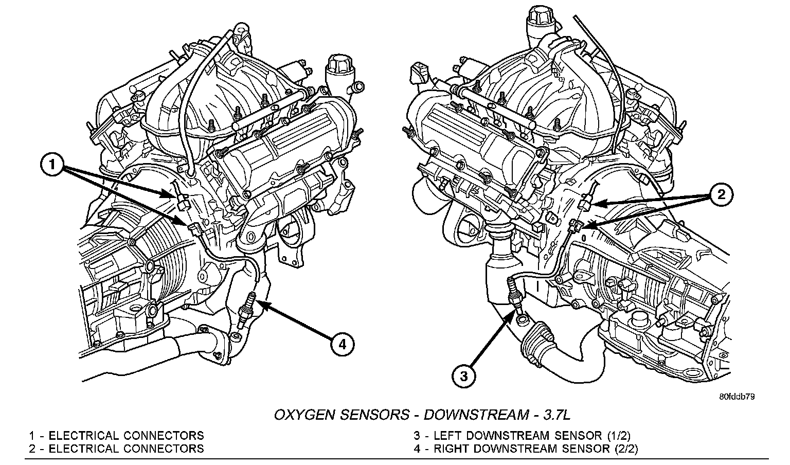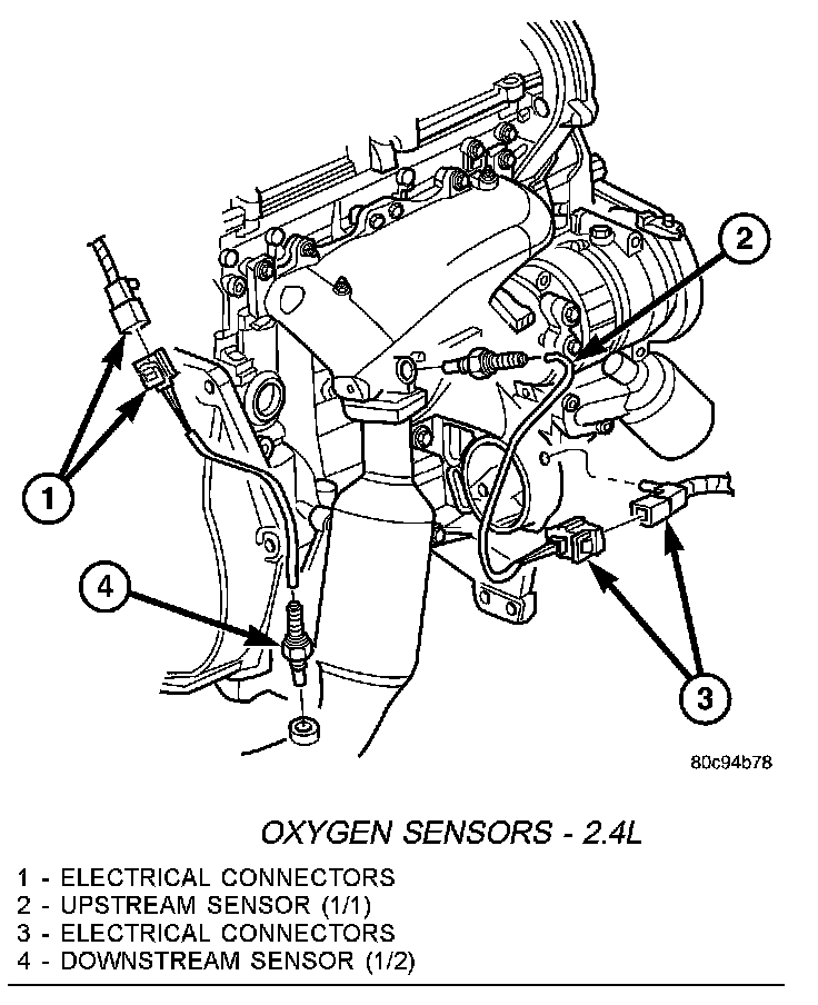 WARNING: THE EXHAUST MANIFOLD, EXHAUST PIPES AND CATALYTIC CONVERTER BECOME VERY HOT DURING ENGINE OPERATION. ALLOW ENGINE TO COOL BEFORE REMOVING OXYGEN SENSOR.