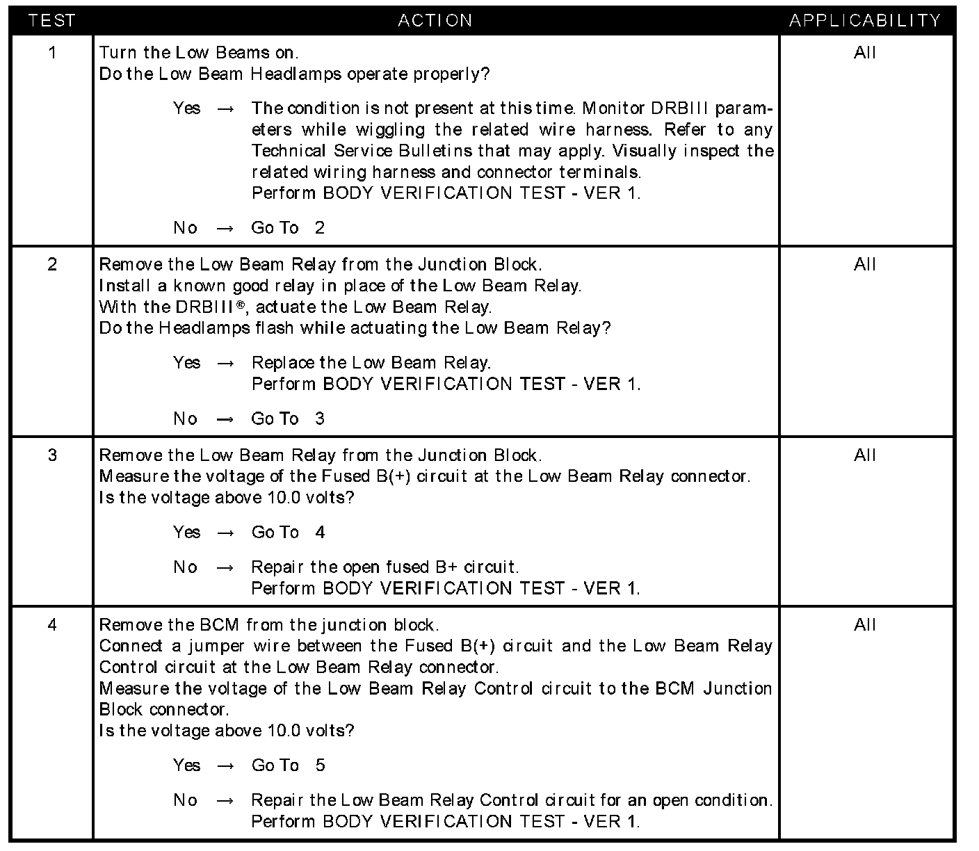 LOW BEAM HEADLAMPS INOPERATIVE