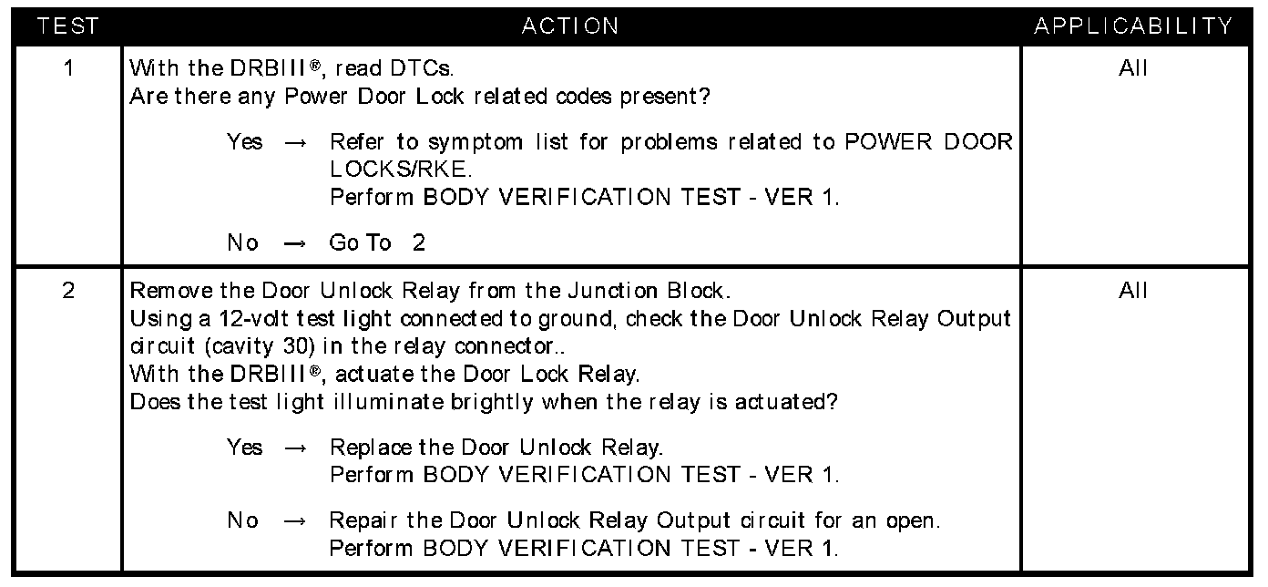 Door unlock relay output circuit open