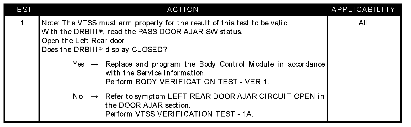 LEFT REAR DOOR DOES NOT TRIP VTSS