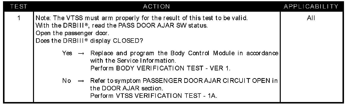 Passenger Door Does Not Trip VTSS