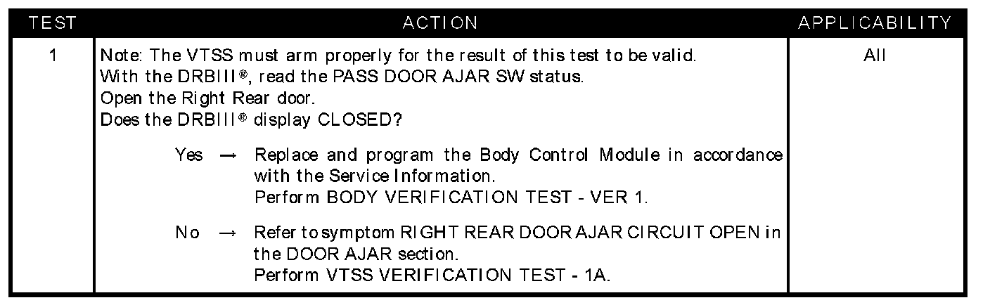 RIGHT REAR DOOR DOES NOT TRIP VTSS