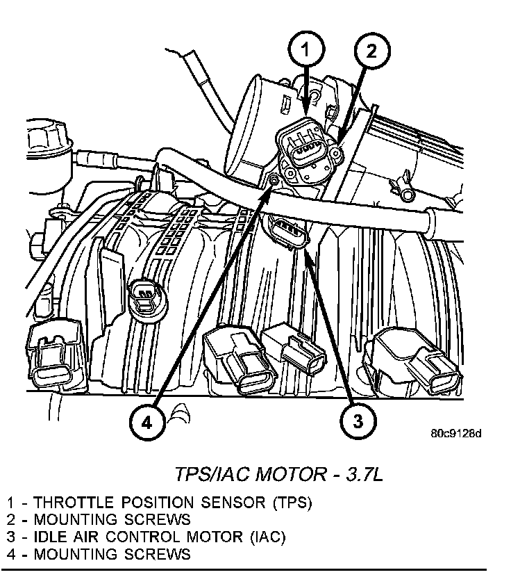 The Throttle Position Sensor (TPS) is mounted to the throttle body.