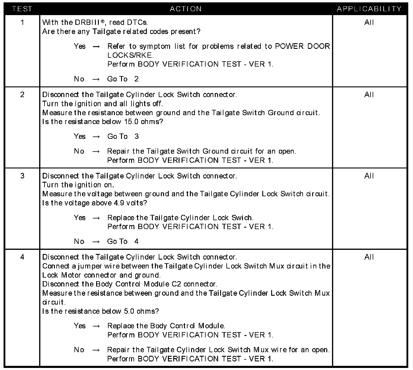 TAILGATE CYLINDER LOCK SWITCH INOPERATIVE