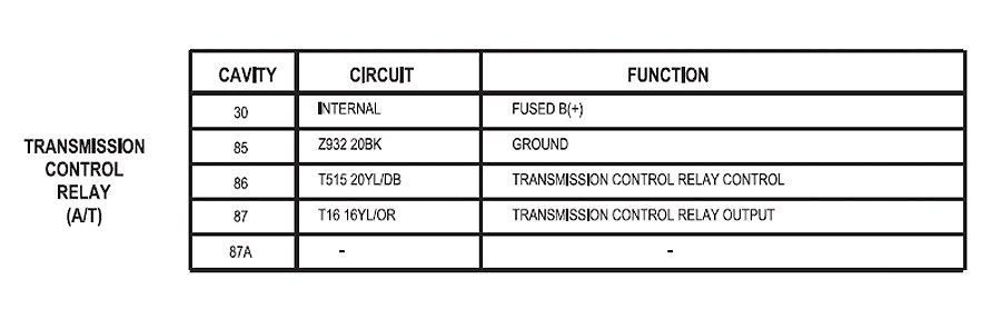 Transmission Control System Relay: Diagrams